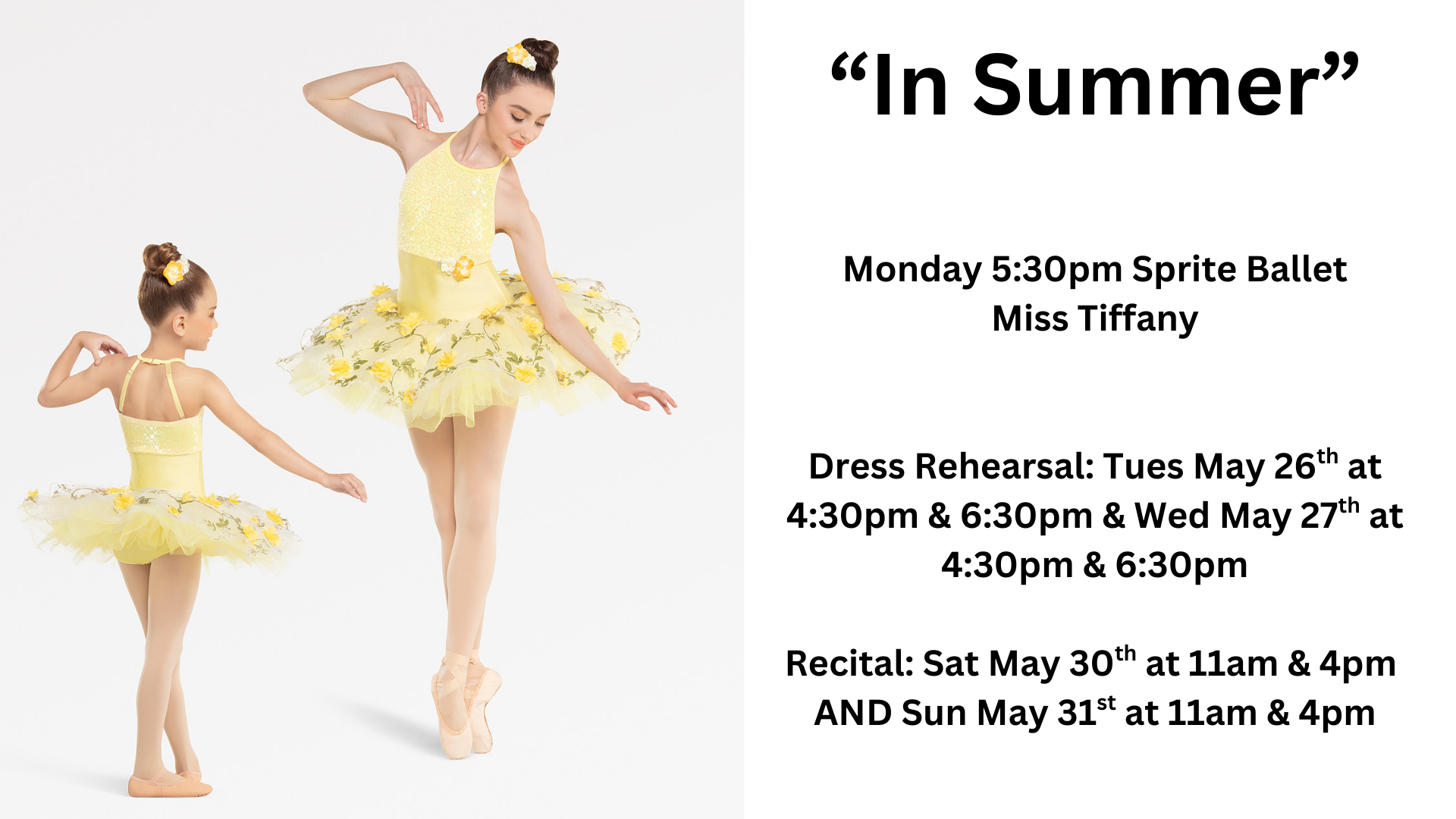 Monday 5:30pm: Sprite Ballet- Miss Tiffany