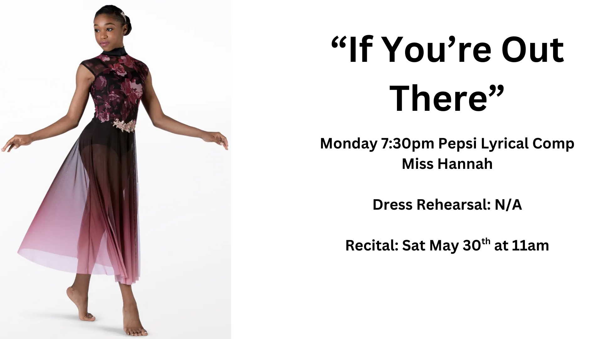 Monday 7:30pm: Pepsi Lyrical Competition- Miss Hannah