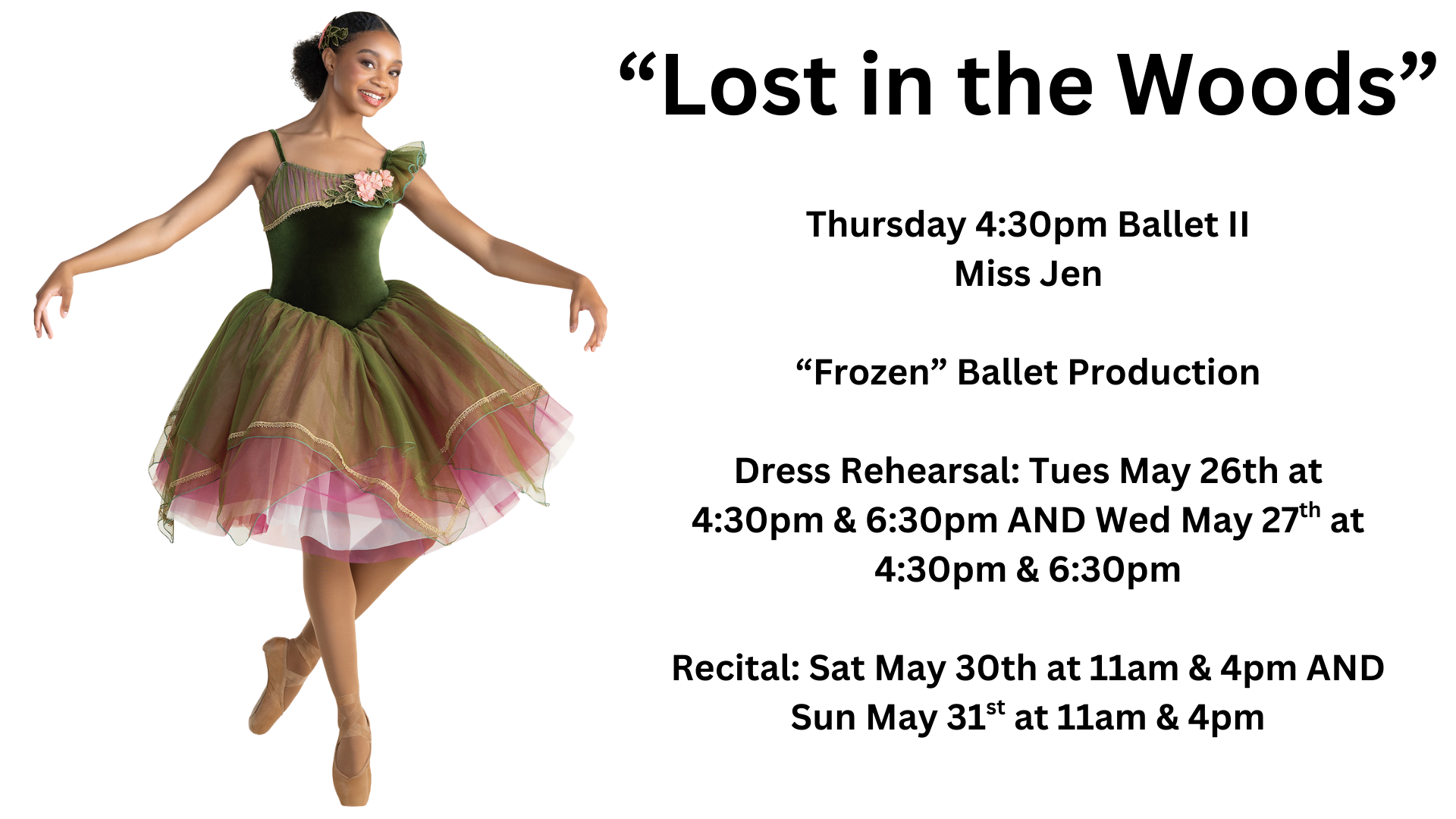Thursday 4:30pm: Ballet II- Miss Jen