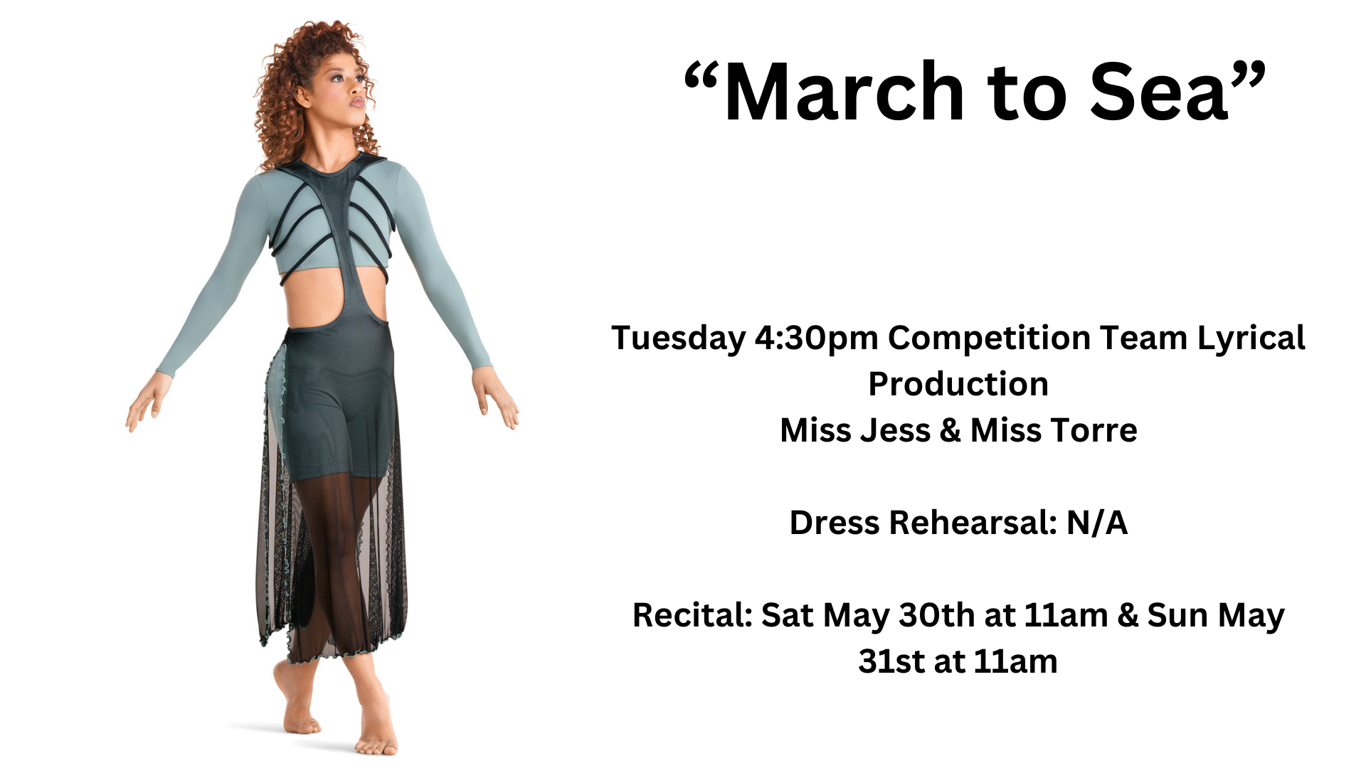 Tuesday 4:30pm: Competition Lyrical Production- Miss Torre & Miss Jess