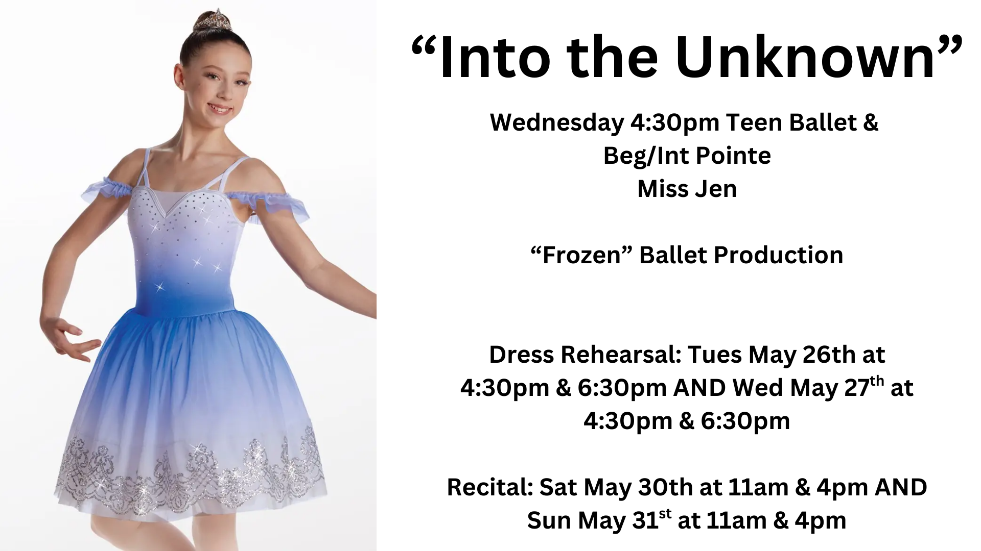 Wednesday 4:30pm: Teen Ballet & Beg./Int. Pointe- Miss Jen