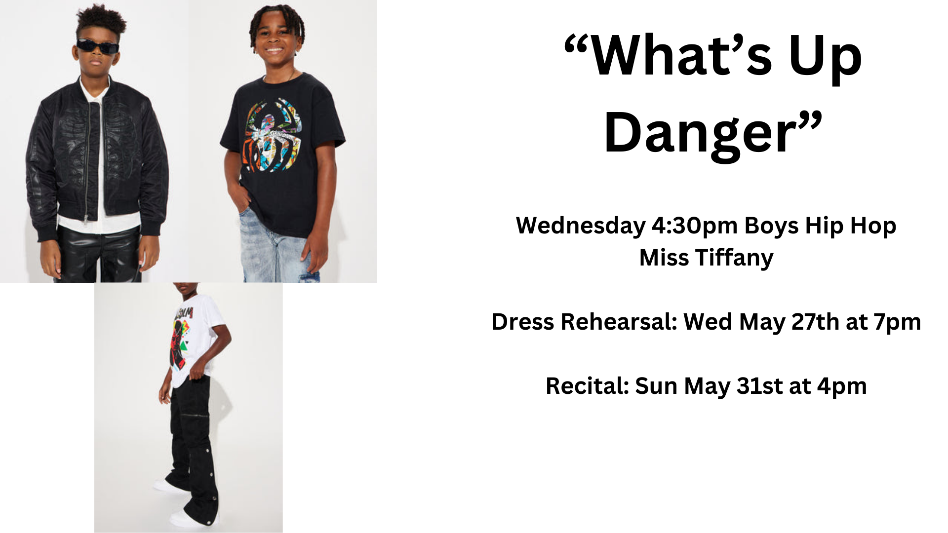 Wednesday 4:30pm: Boys Hip Hop- Miss Tiffany